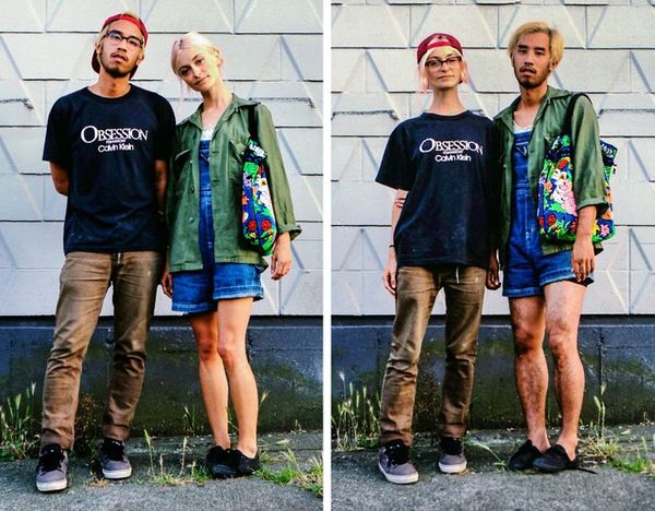 A fotógrafa canadense Hana Pesut clica casais que fazem troca-troca de roupas, série que ela chama de “Switcheroo”