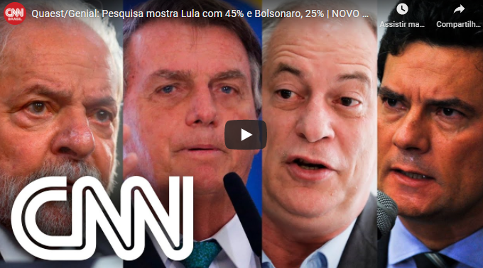 Pesquisa Quaest/Genial: Lula tem 45% e Bolsonaro, 25%; Ciro tem 7% e Moro, 6%